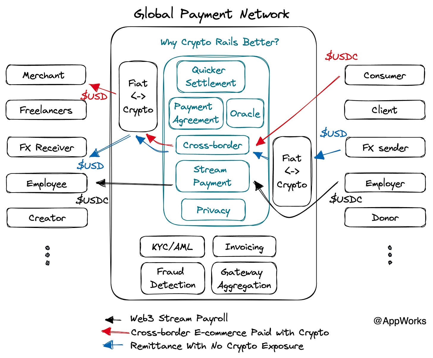 The key is to deeply understand the needs of different payers and payees. There are countless types of payers and payees, and we need to ask: which needs are not currently met by the existing payment network? For example, stream payment can reduce the demand for payday loans, the costs of cross-border e-commerce and remittances can be lowered, milestone payments between platforms and freelancers can be more easily executed, investors can more efficiently execute trading strategies through stream payments, and banks can settle faster through crypto rails.