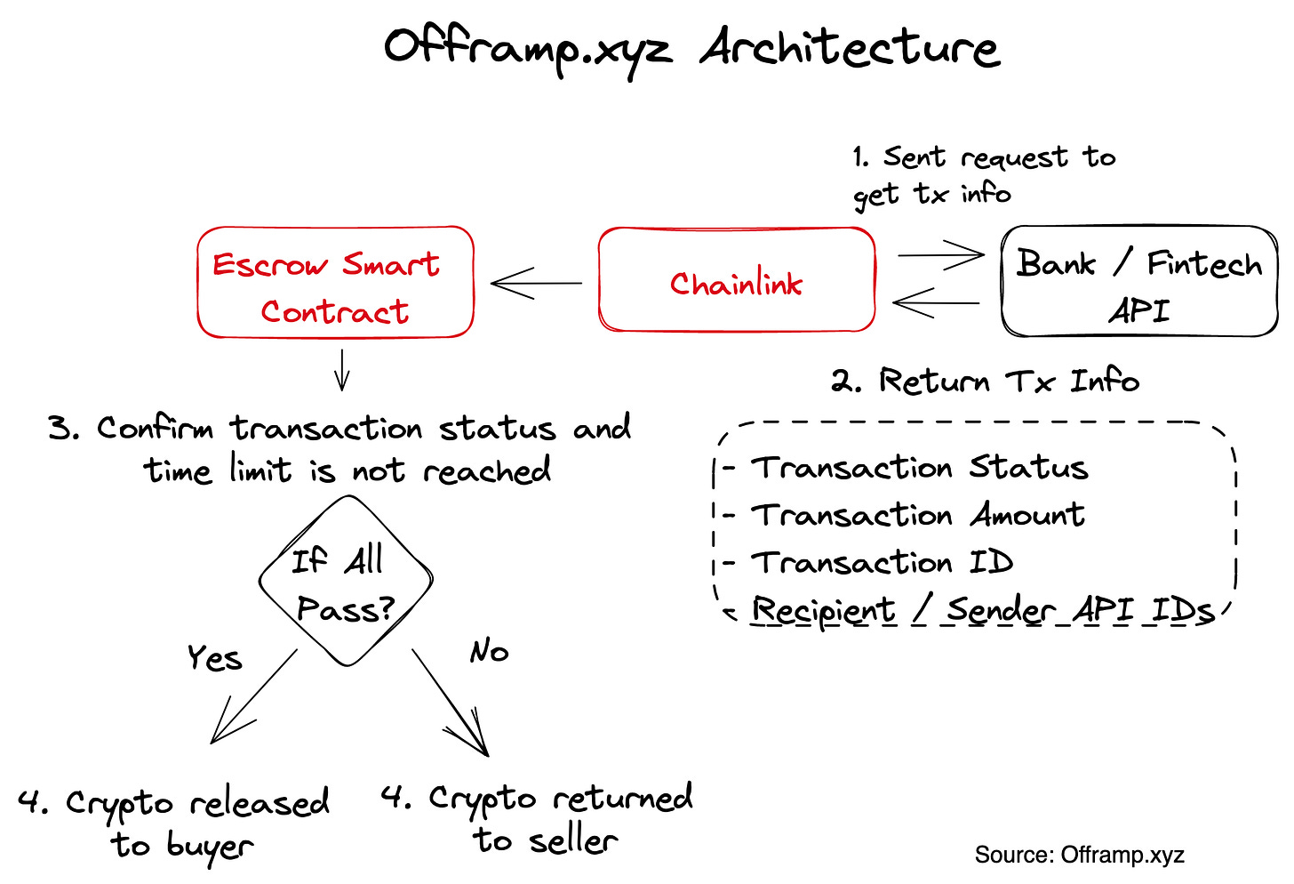 Beyond freelancers, we have also observed a convenient off-ramp platform, which integrates web2 data, connects Chainlink API to pass data onto the chain, and triggers the conditions of an escrowed smart contract. As shown below, Offramp.xyz connects with international money transfer service provider WISE's API to confirm the arrival of fiat currency, then uses Chainlink to transmit data onto the chain. If the transaction data matches, the smart contract automatically completes the payment. The overall withdrawal process only takes 20 seconds, providing a smooth experience, and demonstrating the value of combining smart contracts and oracles to make payment agreements. In the future, if more banking and fintech APIs can be connected, liquidity will greatly increase through network effects